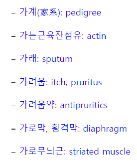 'ㄱ'을 눌러서 들어가게 되면 의학용어 목록이 나오고 각 용어는 개별적인 페이지를 가진다.
