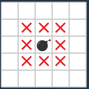 폭탄의 위치를 (row,col)이라고 한다면 ( -1, +0, +1)을 각 row와 col에 해준 위치를 다 살펴봐야한다.