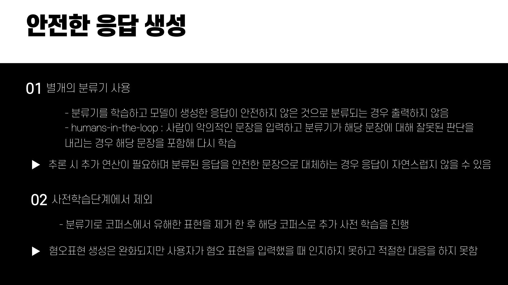 안전한 응답을 생성하기 위해서 여러가지 방법을 이용한 연구가 많이 진행되고 있다.