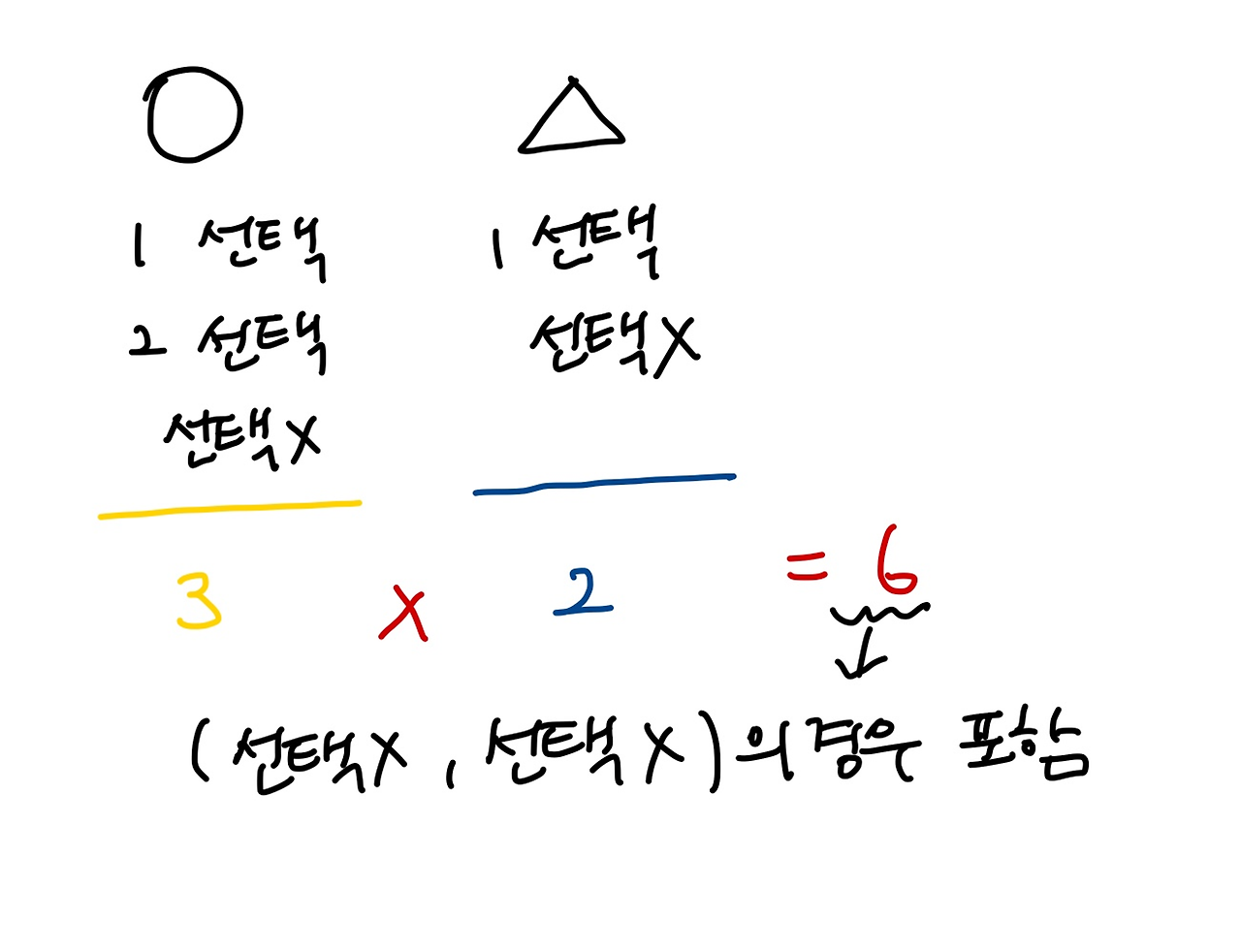 동그라미 옷에서 선택할 수 있는 경우의 수는 1, 2를 선택하거나 선택하지 않는 것