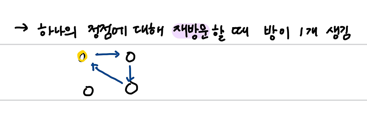 출발한 정점에 대해 다시 돌아온경우, 재방문 할 때 방이 하나 생긴다