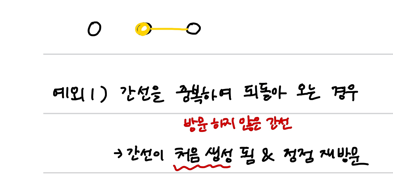 그럼 교차점을 새로운 정점으로 생각하여 재방문한 정점으로 계산 할 수 있음!